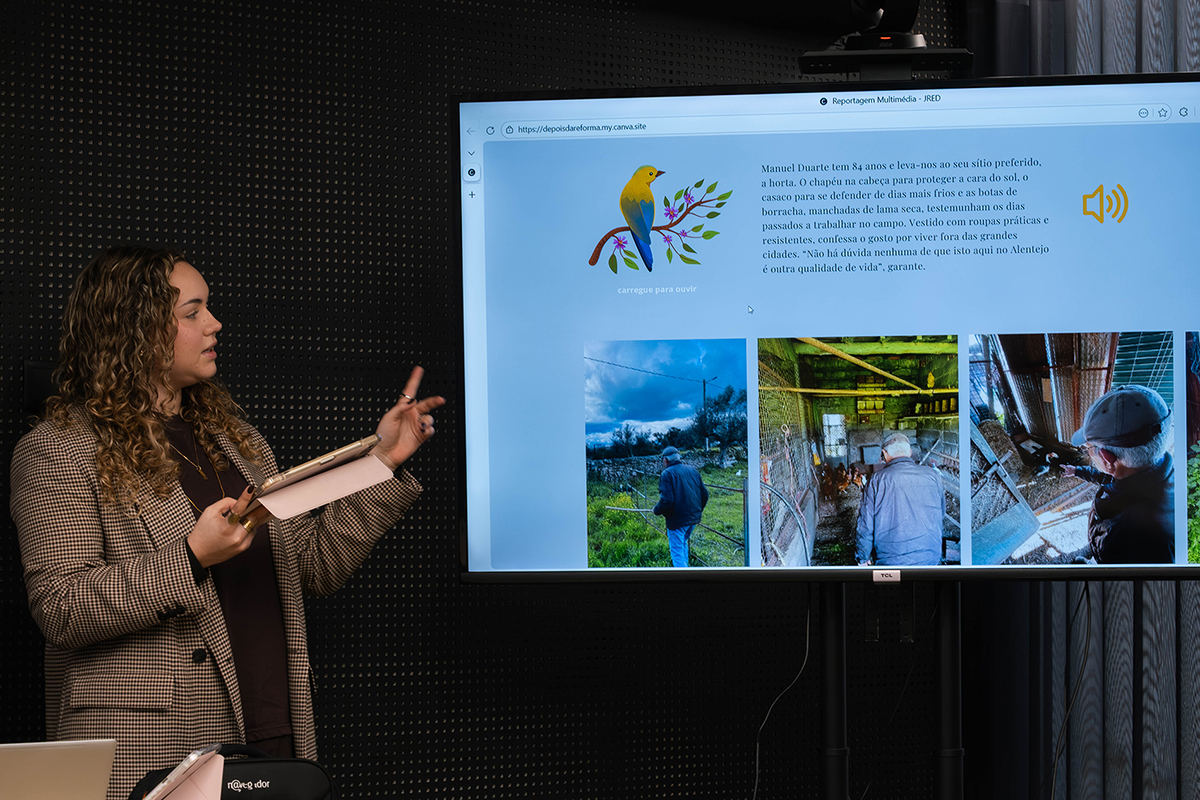 The initiative also featured a presentation by Pantelis Vatikiotis, from Panteion University in Greece, who also teaches Interconnected Journalism in collaboration with MagLab. Additionally, Eduarda Alves and Inês Ramos, final-year Communication and Journalism BA students at Lusófona University, shared their experience producing the first interconnected feature ever published in a media outlet.